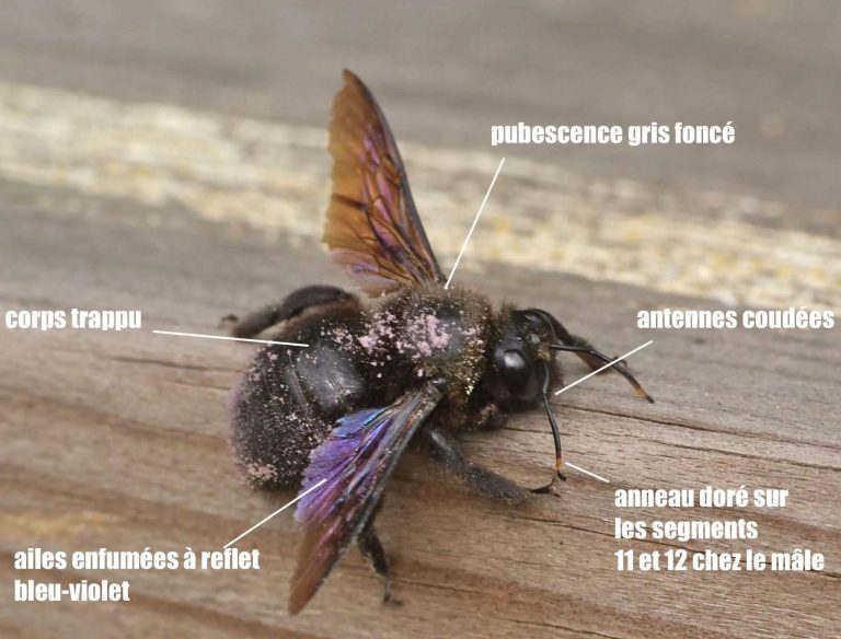 Reconnaissable à son corps noir et à ses ailes aux reflets bleutés, elle impressionne souvent par son vol rapide et bruyant. Malgré son apparence imposante, cette abeille n’est pas agressive et ne pique que très rarement, sauf en cas de dérangement.
