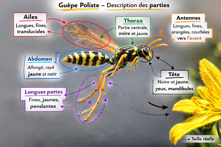 Egalement appelée poliste dominula ou poliste gauloise, vit en colonie organisée. Les ouvrières mesurent généralement entre 12 et 15 mm.